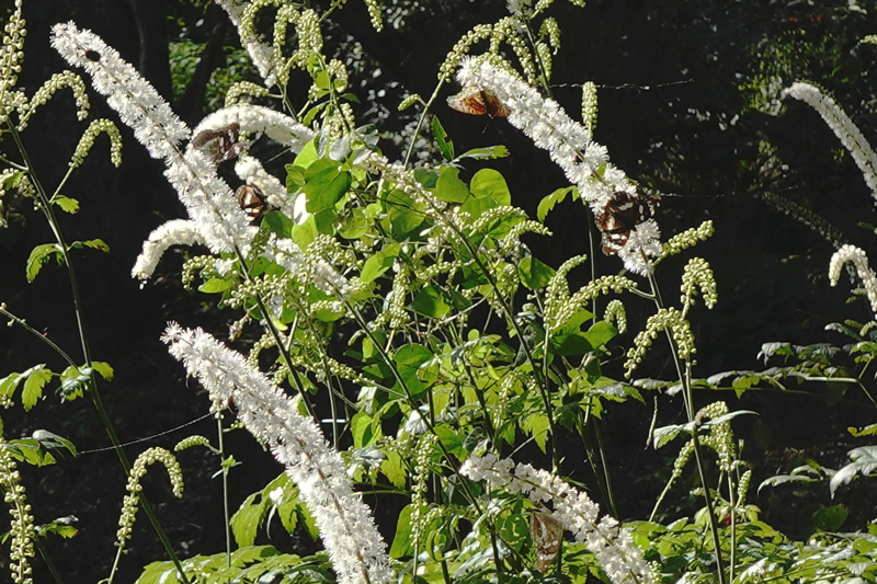 サラシナショウマの花には冬へのパワーを求めて蝶々や蜂など虫たちがたくさん群がって居ます。
