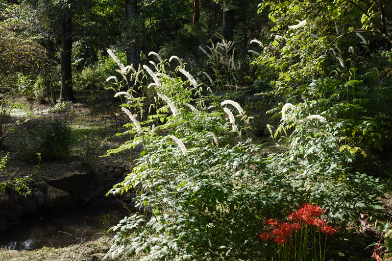 サラシナショウマはこの辺りの野に咲く秋の花、甘い芳香を放って風にそよいでいます。
