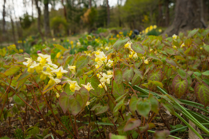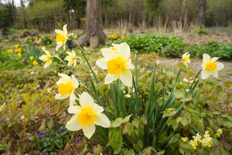 庭のあちこちに拡がり続けるスイセンなど寒さに強い花たちが咲き競っています。 4/3日
